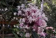 烟火树 Merr.)是唇形科、大青属常绿灌木或小乔木,株高可达4米。幼枝方形,墨绿色。叶对生,长椭圆形或披针形,先端尖,全缘或波状缘。纸质,叶背暗紫红色。聚伞状圆锥花序,顶生,小花多数,聚生成团,…全部>>