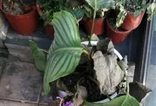 海芋 K. Koch),是天南星科海芋属的大型常绿草本植物;具匍匐根茎,有直立地上茎,基部生不定芽条;叶多数,亚革质,草绿色,箭状卵形,叶柄绿或污紫色,螺旋状排列,粗厚;花序梗圆柱形,绿色,有时污紫色,…全部>>