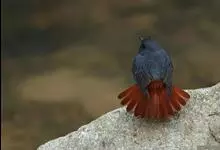 红尾水鸲是雀形目鹟科水鸲属鸟类,又称蓝石青儿、石燕、溪红尾鸲等。雄鸟主体均为暗灰蓝色,额基和眼先深灰黑色;翼暗褐色,外翈羽缘蓝灰色;虹膜褐色,喙黑色,脚肉褐色至黑褐色。雌鸟上体为略泛蓝的暗灰褐色,…全部>>