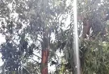 柠檬桉,又名“油加利树”“尤加利树”,是桃金娘科、桉属的常绿大乔木。树高28m,树皮光滑;幼态叶片披针形,有腺毛,基部圆形,叶柄盾状着生,成熟叶片狭披针形;圆锥花序腋生,花蕾长倒卵形;蒴果壶形,…全部>>