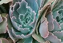 女王花笠,又名扇贝石莲花、女王花舞笠,是景天科拟石莲花属的多肉植物。由美国加利福尼亚州的育种师Dick Wright于1964年培育。特征是呈大波浪状褶皱的红色叶缘和气质高贵的粉紫色调。…全部>>