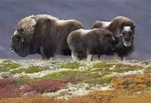 麝牛,是偶蹄目牛科麝牛属哺乳动物。麝牛体型大,但低矮粗壮,头大,吻部宽,眼小;雌雄均具角,四肢短粗,蹄宽大;毛被厚,极耐寒,尾短。雄麝牛在发情时会散发出一种类似麝香的气味,又称麝香牛。…全部>>