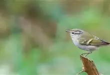 极北柳莺:体长11-13厘米,体小偏灰橄榄色,具明显的黄白色长眉纹,眼先及过眼纹近黑。上体概呈灰橄榄绿色;具甚浅的白色翼斑,大覆羽先端黄白色,形成一道翅上翼斑;中覆羽羽尖成第二道模糊的翼斑;下体白色…全部>>