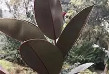 印度榕,别名橡皮树,桑科榕属多年生常绿乔木植物。株高30米;树皮灰白色,平滑;叶厚革质,长圆形或椭圆形,叶柄粗,托叶膜质,深红色;榕果成对生于落叶枝叶腋,卵状长椭圆形,…全部>>