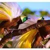 大极乐鸟是极乐鸟属中最大的鸟种。成年雄鸟体长可达到43厘米,雌性可达35厘米。雄鸟的额、颊、喉等墨绿色;头、颈黄色;上体暗赤栗色;腹部葡萄红色,胁部有长饰羽,其基部橙黄,中部黄色,…全部>>
