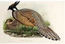 血雉雉科血雉属鸟类,别名血鸡、松花鸡,血雉的雄鸟大覆羽、尾下覆羽、尾上覆羽、脚、头侧、腊膜为红色,故称血雉。其别名甚多,各地皆异。在甘肃,因其胸侧和翅上覆羽沾绿,被称为“绿鸡”;因其羽毛形似柳叶,…全部>>