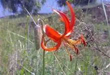 山丹是百合科百合属的多年生草本植物。鳞茎卵形或圆锥形,鳞片长圆形或长卵形,白色;叶散生茎中部,线形,边缘有乳头状突起;花单生或数朵成总状花序,花鲜红色,常无斑点,花被片反卷,…全部>>