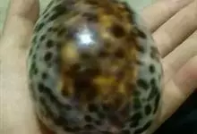 黑星宝螺是宝螺科宝螺属的软体动物。贝壳较大而重,呈卵圆形,圆鼓。长9-10.6厘米,宽约6.8厘米,高约5.3厘米。壳质坚厚,极光滑,有瓷光,色泽呈白色或淡黄色,上面布有大小不同的黑褐色斑点,…全部>>