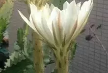 仙人球花 仙人掌科,仙人球属。植株单生或成丛。幼株球形,老株长成圆筒状,高可达75厘米,直径12-15厘米。球体暗绿色,具棱11-12。刺锥状,黑色,长1-1.5厘米。花着生于球体侧方,大型嗽喇叭状…全部>>