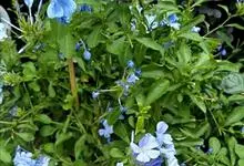 蓝花丹是白花丹科、白花丹属的常绿亚灌木。高约1米;叶薄,呈菱状卵形至狭长卵形;穗状总状花序,总花梗短,花冠淡蓝色至蓝白色,呈倒卵形,苞片呈线状狭长卵形,小苞呈狭卵形或长卵形,…全部>>
