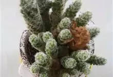 玉翁是仙人掌科、乳突球属多年生草本多浆植物。植株幼时呈扁球形或球形,以后长成圆筒状,直径10厘米左右,淡绿色。疣状突起呈圆锥形,新刺座的白色绵毛很短,疣突腋部则有20根白色长绵毛,绵毛长4厘米左右,…全部>>