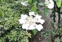 蝴蝶戏珠花 Miq.)是荚蒾科荚蒾属植物。落叶灌木,高达3米;当年小枝浅黄褐色。叶较狭,宽卵形或矩圆状卵形,有时椭圆状倒卵形。花序直径4-10厘米,外围有4-6朵白色、木型的不孕花。果实先红色后变黑色,…全部>>