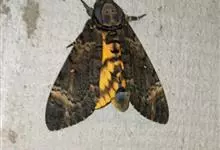 鬼脸天蛾,是鳞翅目天蛾科面形天蛾属动物。成虫翅展100~125毫米,体黑褐色;胸背有骷髅形斑纹;卵圆球形,直径约2毫米,淡黄绿色,表面光滑;老熟幼虫体长70~90毫米,蛹体长约56毫米;前翅为褐色,…全部>>