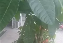 瓜栗 Walp. ),俗称发财树,木棉科小乔木,高4-5米,树冠较松散,幼枝栗褐色,无毛。小叶具短柄或近无柄。花单生枝顶叶腋;花梗粗壮,被黄色星状茸毛,脱落;萼杯状,近革质;花瓣淡黄绿色,狭披针形…全部>>