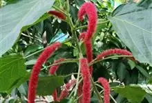 红穗铁苋菜:为大戟科、铁苋菜属植物,灌木,高0.5-3米。嫩枝被灰色短绒毛,毛逐渐脱落,小枝无毛。 花序色泽鲜艳,葇荑花序下垂,如狐狸尾状,雌花近卵形,长约0.8毫米,顶端急尖,具短毛;子房近球形,…全部>>