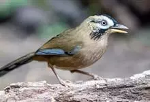 灰翅噪鹛中型鸟类,体长21~25厘米。额黑色,头顶黑或灰色,眼先、脸白色。上体橄榄褐至棕褐色,尾和内侧飞羽具窄的白色端斑和宽阔的黑色亚端斑,外侧初级飞羽外翈蓝灰色或灰色,颧纹黑色。…全部>>