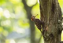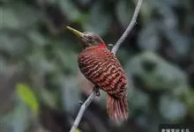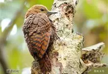 栗啄木鸟:是一种红褐色啄木鸟,体长21厘米。雄性成鸟整个头棕色,但稍淡;眼下有一宽阔血红色纵纹;翕部深棕色,背、腰、尾上覆羽、尾羽也是深棕色;除尾羽外,各羽均具黑色横斑;尾羽则具黑色点斑;翼也是深棕色,…全部>>