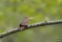 斑姬啄木鸟是鴷形目啄木鸟科姬啄木鸟属鸟类,又叫姬啄木鸟、小啄木鸟。体长9-10厘米。嘴尖而略粗壮,灰黑色;额棕色,向颈后逐渐过渡至橄榄绿色;眉纹白色,过眼纹黑褐色,其下有一白纹,…全部>>