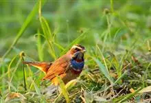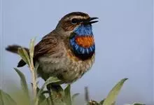 蓝点颏亦称“蓝喉歌鸲”,通称蓝靛颏儿。身体大小和麻雀相似,体长12-13厘米,体重17-18克。头部、上体主要为土褐色。眉纹白色。尾羽黑褐色,基部栗红色。颏部、喉部辉蓝色,下面有黑色横纹。下体白色。…全部>>