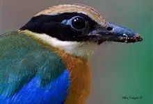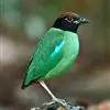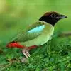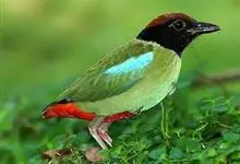 绿胸八色鸫:是雀形目八色鸫科的鸟类,共有12个亚种。体长为16-18厘米,体重65-69克。体型圆胖,尾短,腿长。头黑,上体绿色,两翼深色而具白色斑纹,头顶至后枕深褐,胸及腹部苹果绿,臀亮红。…全部>>