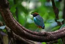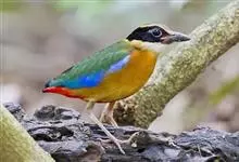 蓝翅八色鸫是雀形目八色鸫科的鸟类。体长17-20厘米,体重类约48-70克,体型圆胖,尾短,腿长,以身体具有红、绿、蓝、白、黑、黄、褐、栗等鲜艳夺目,丰富艳丽的色彩而得名,是很有观赏价值的鸟类。主要…全部>>