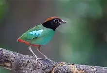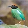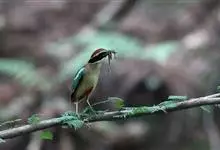 绿胸八色鸫:是雀形目八色鸫科的鸟类,共有12个亚种。体长为16-18厘米,体重65-69克。体型圆胖,尾短,腿长。头黑,上体绿色,两翼深色而具白色斑纹,头顶至后枕深褐,胸及腹部苹果绿,臀亮红。…全部>>