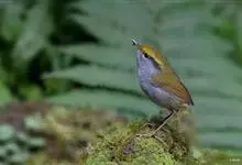栗头地莺:小型鸣禽。体长约10厘米。体型纤细,是中国体型最小的鸟类之一;喙细尖,上喙先端多有缺刻;翅短圆;尾短至中等;腿短而细。羽色以灰、褐及橄榄绿为主,雌雄羽色相似。栖息于灌木或稀疏林内,…全部>>