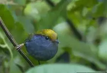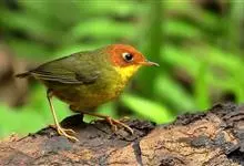 金冠地莺:形态与灰腹地莺相似,上体橄榄绿,前额至头顶渲染亮金黄色;下体几乎纯暗石板灰色,下嘴基部橙红色或橙黄色。虹膜褐色;上嘴角褐色,下嘴基部橙红色或深橙黄色直至嘴尖;跗跖和趾褐色,爪褐色。…全部>>