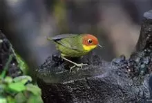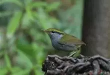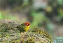 金冠地莺:形态与灰腹地莺相似,上体橄榄绿,前额至头顶渲染亮金黄色;下体几乎纯暗石板灰色,下嘴基部橙红色或橙黄色。虹膜褐色;上嘴角褐色,下嘴基部橙红色或深橙黄色直至嘴尖;跗跖和趾褐色,爪褐色。…全部>>