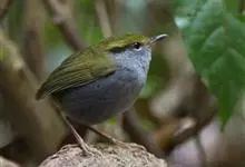 栗头地莺:小型鸣禽。体长约10厘米。体型纤细,是中国体型最小的鸟类之一;喙细尖,上喙先端多有缺刻;翅短圆;尾短至中等;腿短而细。羽色以灰、褐及橄榄绿为主,雌雄羽色相似。栖息于灌木或稀疏林内,…全部>>