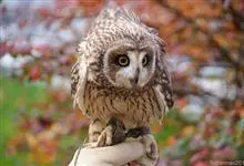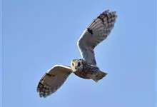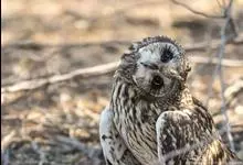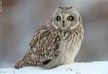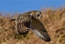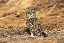 短耳鸮又名小耳木兔、田猫王、夜猫子等,是鸮形目鸱鸮科耳鸮属中小型猛禽动物。成鸟面盘显著,眼周黑色;眼先及内侧眉纹灰白色,面盘余部棕黄色杂以黑色细羽干纹;耳簇羽短小而几乎不外露,…全部>>