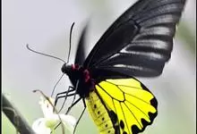 金裳凤蝶是凤蝶科、裳凤蝶属的动物。金裳凤蝶身体呈黑色,头、颈和胸侧有红毛,腹部有黑黄两色相间条纹,雄蝶前翅黑色,具黑天鹅绒光泽,各脉两侧灰白色,后翅金黄色,各室外缘有等腰三角形黑斑1枚,斑内侧有晕,…全部>>