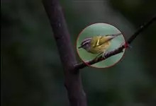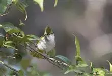 白腹凤鹛是绿鹃科、绿凤鹛属的小型鸟类,体长10-12厘米。上体从头到尾黄绿色,有短的羽冠,头顶微具黑色羽轴纹;眼先、眼周,耳羽和下体灰白色,尾下覆羽黄色。虹膜褐色或红褐色,上嘴浅褐色或肉褐色,…全部>>