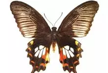 荧光裳凤蝶是凤蝶科裳凤蝶属的一种大型蝴蝶,该物种共有3个亚种。该蝶飞翔的时候姿态优美,前翅黑色,后翅金黄色和黑色交融的斑纹在阳光照射下金光灿灿,显得华贵美丽。幼虫寄主为多种马兜铃属的植物,取食马兜铃…全部>>