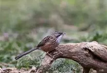 褐胁雀鹛,是莺科、雀鹛属的鸟类。褐胁雀鹛是小型鸟类,体长13-15厘米。头顶棕褐色,黑色侧冠纹和宽阔的白色眉纹,眼先黑色。上体包括两翅和尾橄榄褐色。颏、喉、胸、腹白色,腹和胸沾皮黄色,两胁橄榄褐色,…全部>>