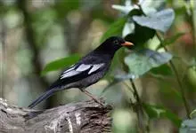 灰翅鸫是鸫科、鸫属中型鸟类。体长26-29厘米。雄鸟通体黑色,翅上具大而明显的淡灰色翼斑,在黑色体羽的衬托下极为醒目。腹至尾下覆羽具银灰色羽缘,形成明显的银灰色鳞状斑。嘴橙黄色,眼周黄色。…全部>>