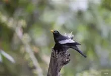 灰翅鸫是鸫科、鸫属中型鸟类。体长26-29厘米。雄鸟通体黑色,翅上具大而明显的淡灰色翼斑,在黑色体羽的衬托下极为醒目。腹至尾下覆羽具银灰色羽缘,形成明显的银灰色鳞状斑。嘴橙黄色,眼周黄色。…全部>>