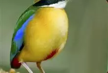 仙八色鸫是雀形目八色鸫科八色鸫属鸟类。雄鸟前额至枕部深栗色,有黑色中央冠纹,眉纹淡黄,背、肩及内侧飞羽辉绿色,飞羽黑色具白翼斑,颏黑褐、喉白,下体淡黄褐色、腹中及尾下覆羽朱红色。雌鸟羽色似雄鸟但较浅淡。…全部>>