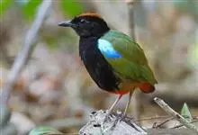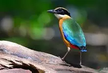 蓝翅八色鸫是雀形目八色鸫科的鸟类。体长17-20厘米,体重类约48-70克,体型圆胖,尾短,腿长,以身体具有红、绿、蓝、白、黑、黄、褐、栗等鲜艳夺目,丰富艳丽的色彩而得名,是很有观赏价值的鸟类。主要…全部>>