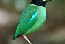 绿胸八色鸫:是雀形目八色鸫科的鸟类,共有12个亚种。体长为16-18厘米,体重65-69克。体型圆胖,尾短,腿长。头黑,上体绿色,两翼深色而具白色斑纹,头顶至后枕深褐,胸及腹部苹果绿,臀亮红。…全部>>