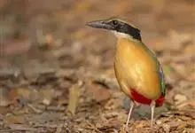 栗头八色鸫又叫锅巴雀,体长为24-26厘米,体重100-135克,是雀形目八色鸫科的鸟类。体型圆胖,尾短,腿长,常在森林底层或低植被中找食无脊椎动物。叫声简单哀婉。…全部>>