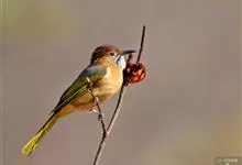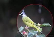灰短脚鹎,体长19-22厘米。头顶和短的羽冠黑色,上体暗灰色,耳羽灰褐色,两翅表面橄榄绿黄色。大覆羽和内侧飞羽外翈橄榄黄色,在翅上形成大块绿黄色斑,在灰色的上体极为醒目。尾暗褐色具橄榄绿色羽缘。…全部>>