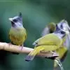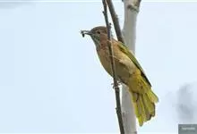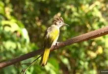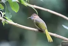 凤头雀嘴鹎:属小型鸟类,体长18-22厘米。嘴粗短、呈象牙色或乳黄色,前额和脸灰色,头顶黑色,有一朝前竖立的黑色羽冠。上体橄榄绿色,下体黄绿色,尾羽黄绿色具宽阔的黑褐色端斑。…全部>>
