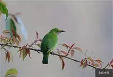 蓝翅叶鹎:小型鸟类,体长15-18厘米。雄鸟通体草绿色,尾蓝绿色,肩和翅亮蓝 色,胸缀有黄色,颏、喉黑色。雌鸟颏,喉蓝绿色。栖息在海拔1500米以下的常绿阔叶林、次生林和林缘疏林灌丛中。…全部>>