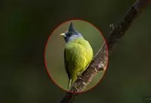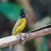 黑冠黄鹎:体长18-21厘米,是一种中等体型偏黄色鹎。整个头、颈、颏、喉黑色,头顶有显著直立的羽冠,黑色,上体褐橄榄黄绿色,下体橄榄黄色。虹膜偏红;嘴及脚黑色。…全部>>