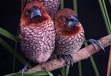 栗腹文鸟:小型鸟类,体长10-12厘米。嘴蓝灰色,基部粗厚,先端尖、呈圆锥状, 脚亦为蓝灰色,整个头、颈和上胸黑色,其余体羽栗色,或下胸和腹中央至尾下覆羽黑色。尾栗红色。全部>>