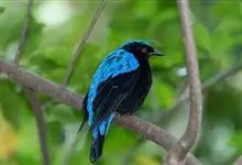 和平鸟中型鸟类,体长24~28厘米。眼红色,嘴、脚黑色。雄鸟从头顶到尾上覆羽等整个上体辉蓝色具紫色光泽,其余体羽黑色。雌鸟通体铜蓝色,仅飞羽黑褐色。常见的低地留鸟,…全部>>