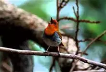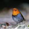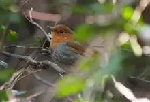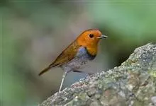 日本歌鸲:体型小似麻雀,但羽毛颜色较为美丽。嘴细长,嘴须不发达;翅短圆,上体草黄褐;雄鸟喉部橙棕色,十分明显,雌鸟却转为淡橙黄色。第一枚初级飞羽短狭;尾长约为跗蹠长度的二倍;跗蹠黑褐色,形粗长而健。…全部>>