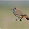 蓝点颏亦称“蓝喉歌鸲”,通称蓝靛颏儿。身体大小和麻雀相似,体长12-13厘米,体重17-18克。头部、上体主要为土褐色。眉纹白色。尾羽黑褐色,基部栗红色。颏部、喉部辉蓝色,下面有黑色横纹。下体白色。…全部>>