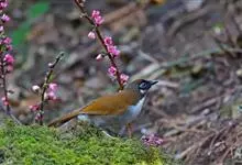 日本歌鸲:体型小似麻雀,但羽毛颜色较为美丽。嘴细长,嘴须不发达;翅短圆,上体草黄褐;雄鸟喉部橙棕色,十分明显,雌鸟却转为淡橙黄色。第一枚初级飞羽短狭;尾长约为跗蹠长度的二倍;跗蹠黑褐色,形粗长而健。…全部>>
